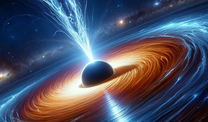The black hole constantly shoots jets of material away from its galaxy, and its colossal jet reaches a length of 150,000 light years – more significant than the estimated diameter of our Milky Way.