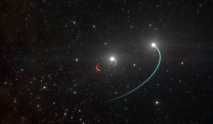 Although the black hole is visually impossible to see, the two bright stars that accompany it are a visible observation. The analysis of light emission allowed the researchers to reveal the unusual rotation characteristics of these stars and to detect traces of an invisible object.