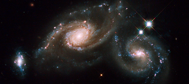 In 2006, the Hubble Space Telescope captured a compelling cosmic scene: two galaxies in the constellation Pisces South, 100 million light-years from our planet, are being pulled apart by a third galaxy under the influence of their gravity.