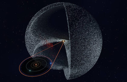 Scientists suggest that the location of most comets seen close to the Sun is due to the influence of tidal forces caused by the Milky Way – our galaxy. Just as the tidal forces of the Moon affect the Earth’s oceans, causing tides to ebb and flow, tidal forces from the galaxy bend and warp the orbits of objects in the outer solar system, pulling them toward the center of the galaxy. Inside the solar system, these effects are less significant due to the Sun’s gravity. However, in the outer regions, the influence of the Sun weakens, and the influence of the gravitational field of the Milky Way becomes more important.