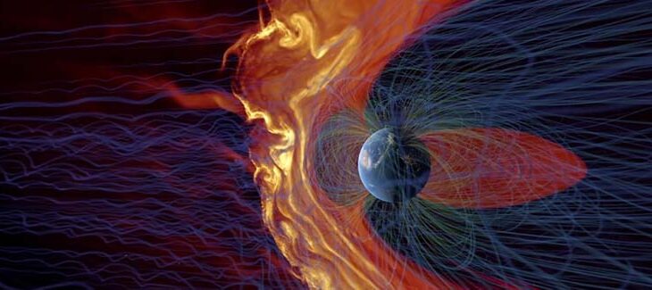 Banner image: Solar plasma interacts with Earth’s magnetic field in this computer-generated visualization. Credit: Advanced Visualization Lab, National Center for Supercomputing Applications, University of Illinois, Urbana-Champaign (National Science Foundation Award 1445176)