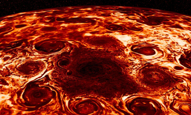 One exciting aspect of studying atmospheric spots on Jupiter is the possibility of collision of these vortices due to the difference in the speed of their movement in the planet’s atmosphere. Such collisions can lead, for example, to a change in the color of spots. One incident of such a collision occurred in 1975 when the color of the Great Red Spot changed several years after a crash with another atmospheric structure.