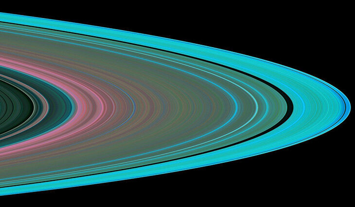 For example, Saturn is 9.5 meters with a diameter of 300,000 miles (480,000 kilometers). If we imagine that the thickness of Saturn’s ring is equal to the thickness of a sheet of writing paper, then the area of its rings would be comparable to the area of a football field.