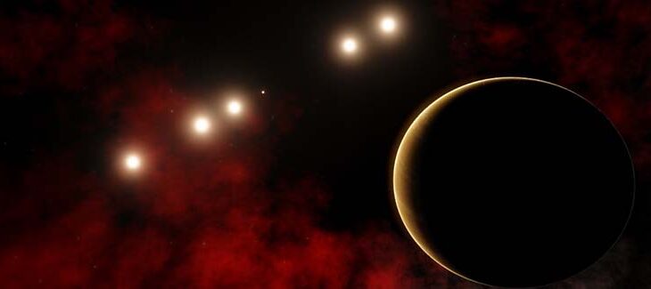 Exoplanets are planets outside the solar system. Of the more than 800 known, 64 orbit binary stars. Some of them orbit one star, others orbit both. Most of these exoplanets in systems with a distance between stars of 35-100 AU are located at about 20 AU from the stars.