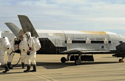 The spacecraft and Neil Armstrong are likely part of the X-37B Orbital Test Vehicle program, a…