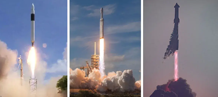 Banner image: Falcon 1 (left), Falcon Heavy (middle), and Starship (right). Credit: SpaceX